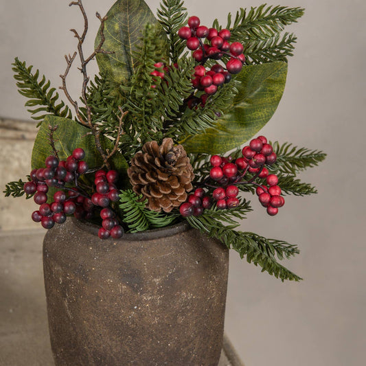 17" MIX FOLIAGE W/ BERRIES & CONES PICK